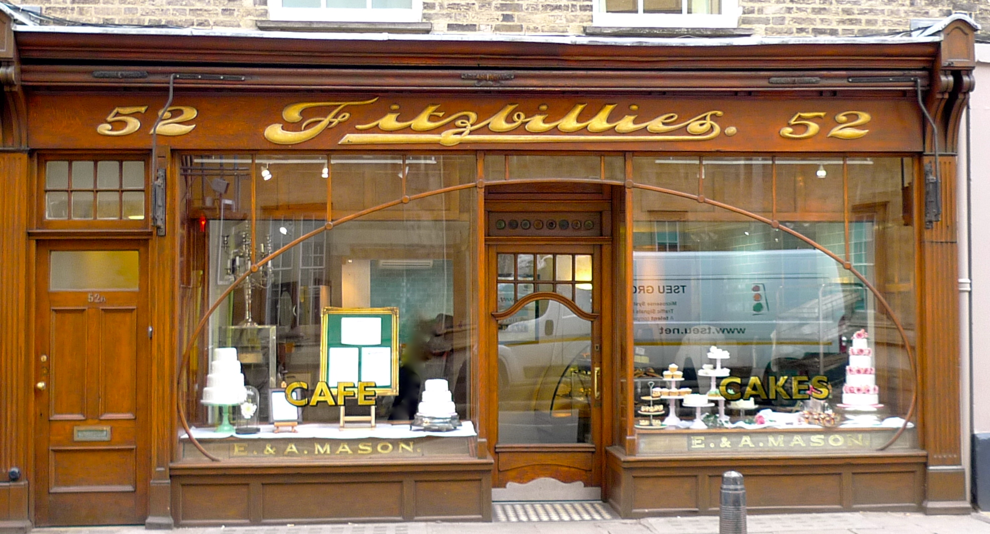 A.E. Mason established Fitzbillies, a bakery and patisserie, in 1922.  Recognizable by its distinctive art nouveau frontage, the shop has had five owners to date, all of whom have baked with a passion for traditionally made fine foods.